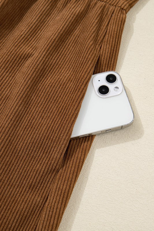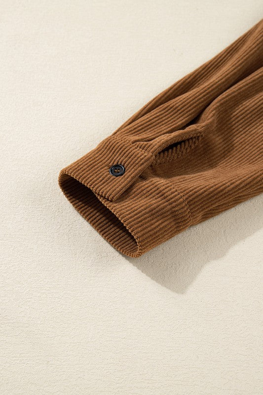 Plus Size Corduroy Button-Up Collared Shirt Dress