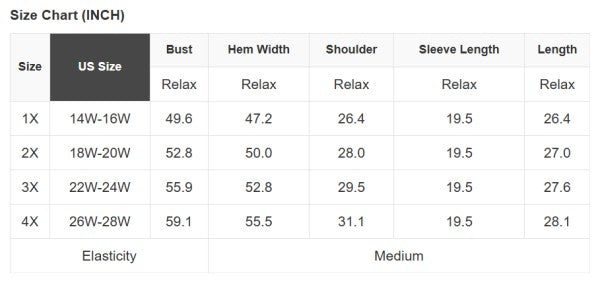 Plus Size Info: See size chart for approximate measurements