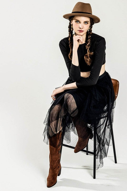 Plus Waterfall PolkaDot Mesh Ruffle Midi Skirt