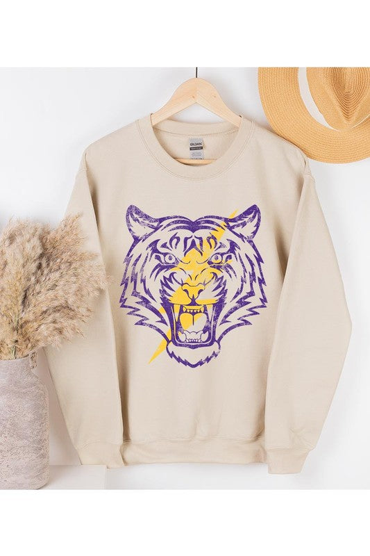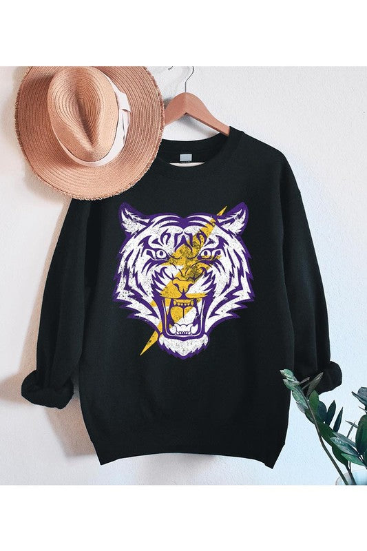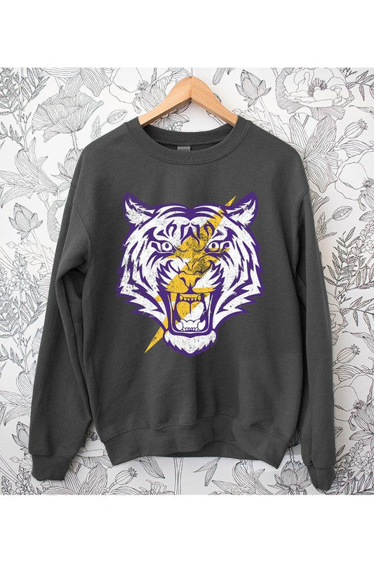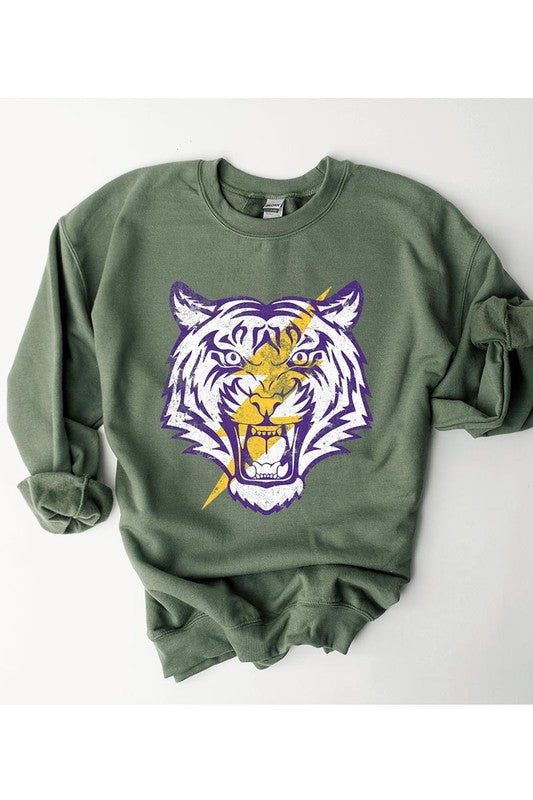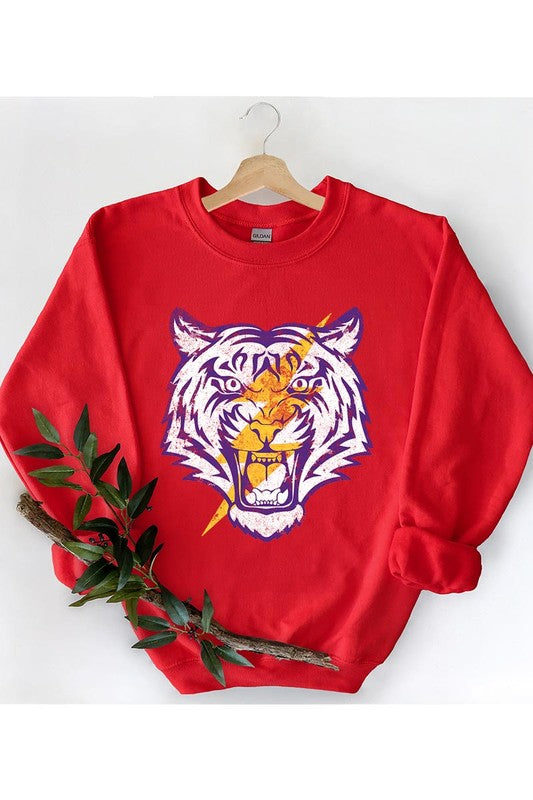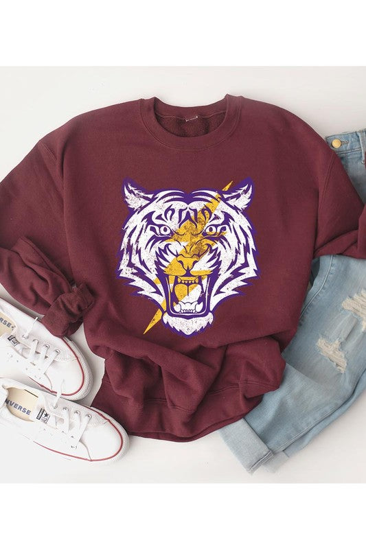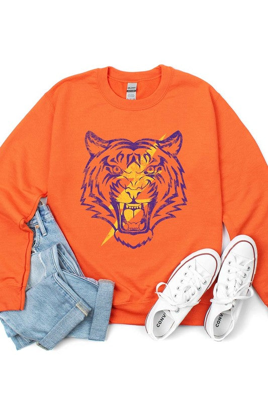 TIGER FACE WITH LIGHTNING BOLT UNISEX FLEECE SWEATSHIRT