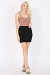 A Mini Skirt which was made with the materials polyester, nylon, as well as spandex.