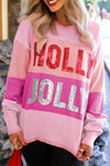 Christmas HOLLY JOLLY Sequin Colorblock Crewneck S
