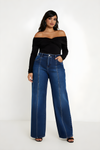 Risen Jeans | Plus Size Mid Rise Wide Leg Front Seam Detail