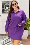 Step out in style with this playful plus size set featuring a solid collar half-zip pullover and a matching mini skirt. Designed for comfort and flair, the pullover offers easy wear with its zipper detail while the mini skirt adds a flirty touch to your look. Perfect for casual outings or fun weekends, this coordinated set brings effortless cool to your wardrobe. Polyester/Viscose/Spandex